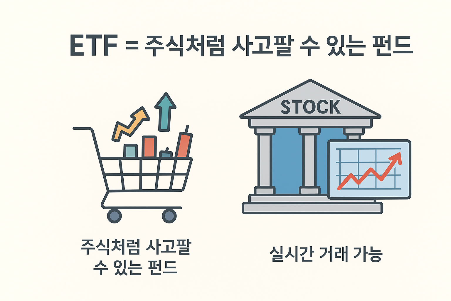 ETF는 “펀드의 안정성과 주식의 편리함”을 합친 투자 상품이라고 할 수 있어요.